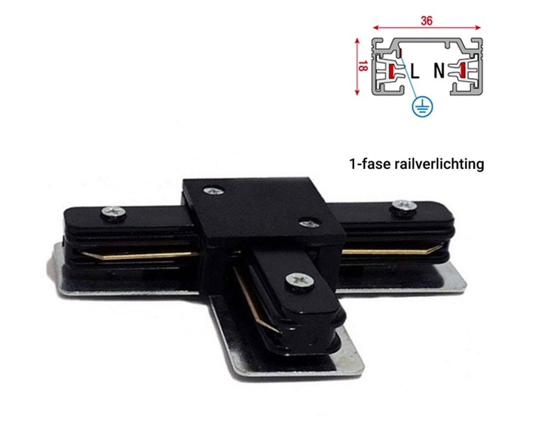 Met deze 1 Fase Rail koppelstuk T is het mogelijk de 1 Fase rail 2 wire zwart te verlengen in een gewenste lengte.