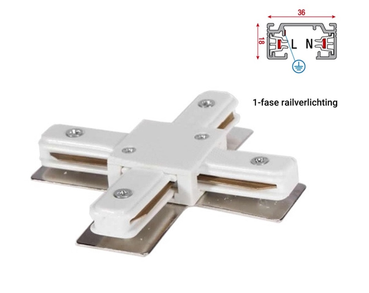 Met deze 1 Fase Rail koppelstuk Kruis is het mogelijk de 1 Fase rail 2 wire wit te verlengen in een gewenste lengte.