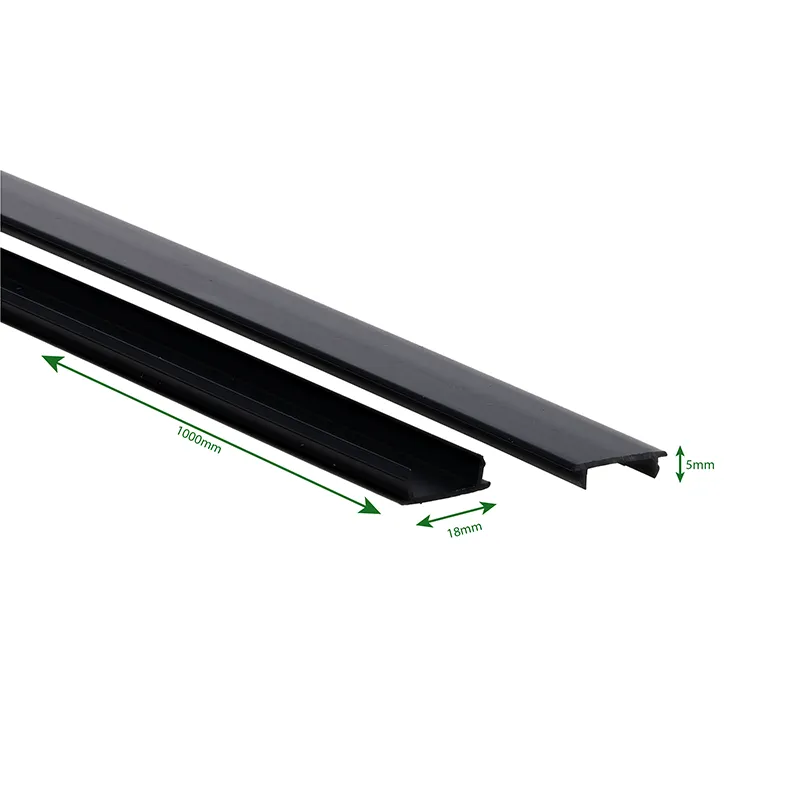 Hij heeft een lengte van 100 cm, een diepte van 1,9 cm en een hoogte van 0,5 cm. Hij is gemaakt van kunststof en afgewerkt in een zwarte kleur.