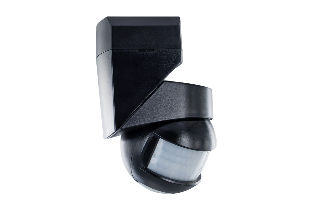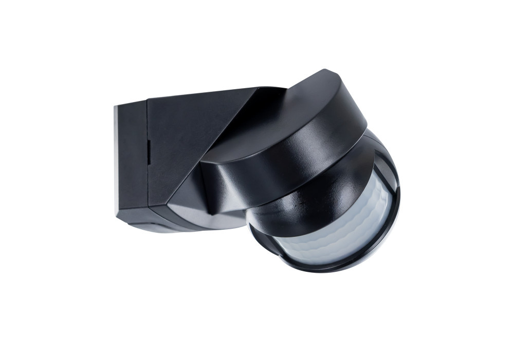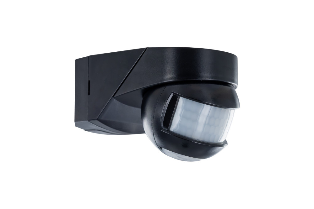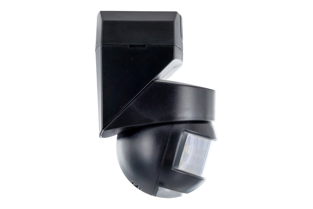 Opbouw bewegingsmelder in het zwart. Instelbaar in 180 graden en 360 graden detectiehoek