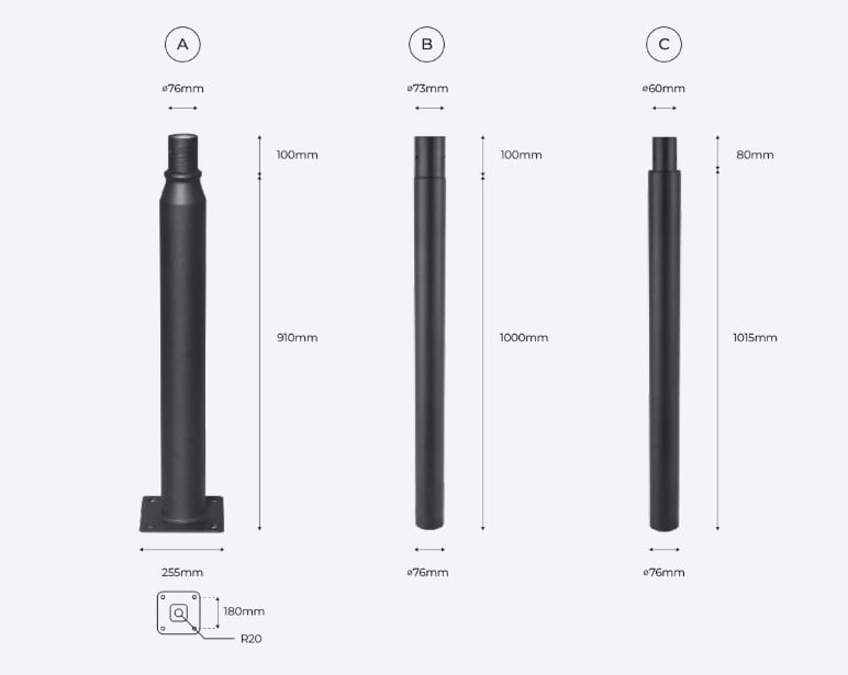 De koppelbare lichtmast is een innovatieve oplossing die functionaliteit en modern design combineert. Dankzij het modulaire ontwerp kan de standaard masthoogte van 4 meter eenvoudig worden uitgebreid tot 5 meter. De palen zijn los per meter te bestellen.