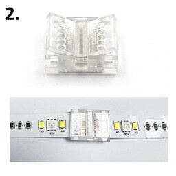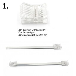 Tip! Gebruik de aansluitconnectoren ook voor het maken van strip tot strip connector waarbij je 2 aansluitconnectoren op een 6 aderig LED strip draad monteert. Ideaal wanneer je een tussenafstand tussen 2 LED strips wilt of wanneer je een hoekverbinding wilt maken.