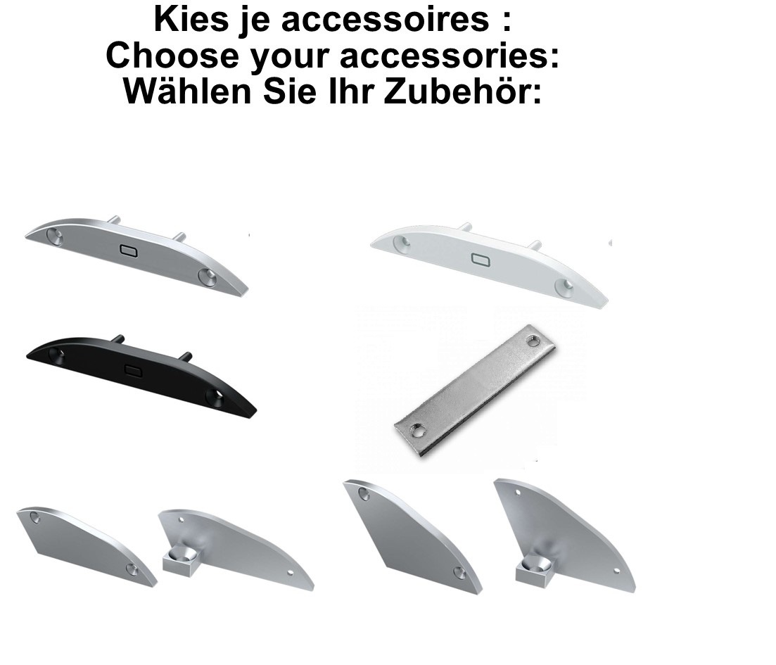 Werk je Aluminium LED strip profiel af met deze LED strip accessoires in de kleur Grijs, Zwart, Wit en aluminium. Geschikt voor Led strip profiel RETO: artikelnummer: LLA2796