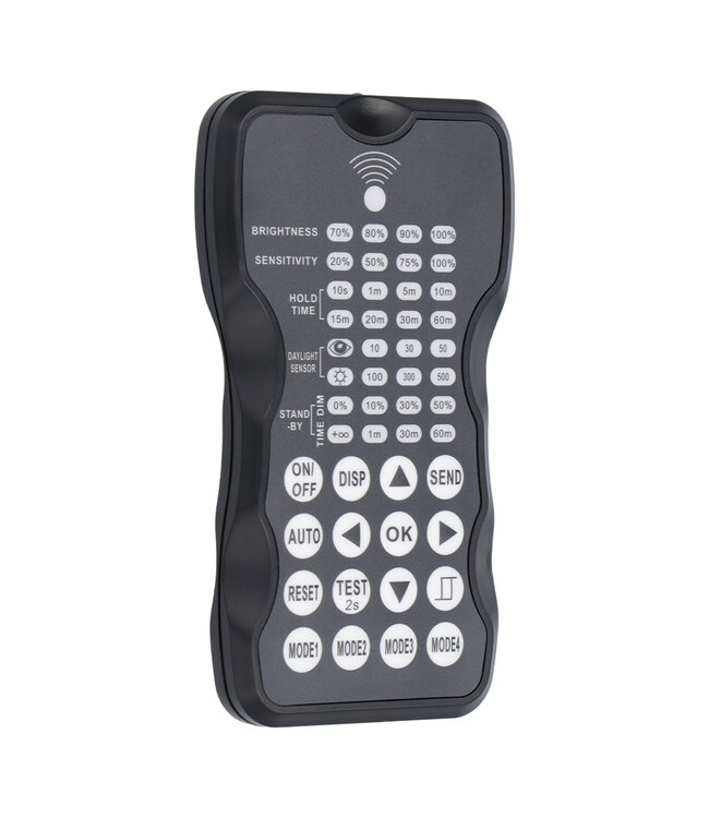 Met de afstandsbediening kan je de Helderheid, gevoeligheid, brandtijd, Daglichtsensor en terugdim lichtopbrengst instellen.