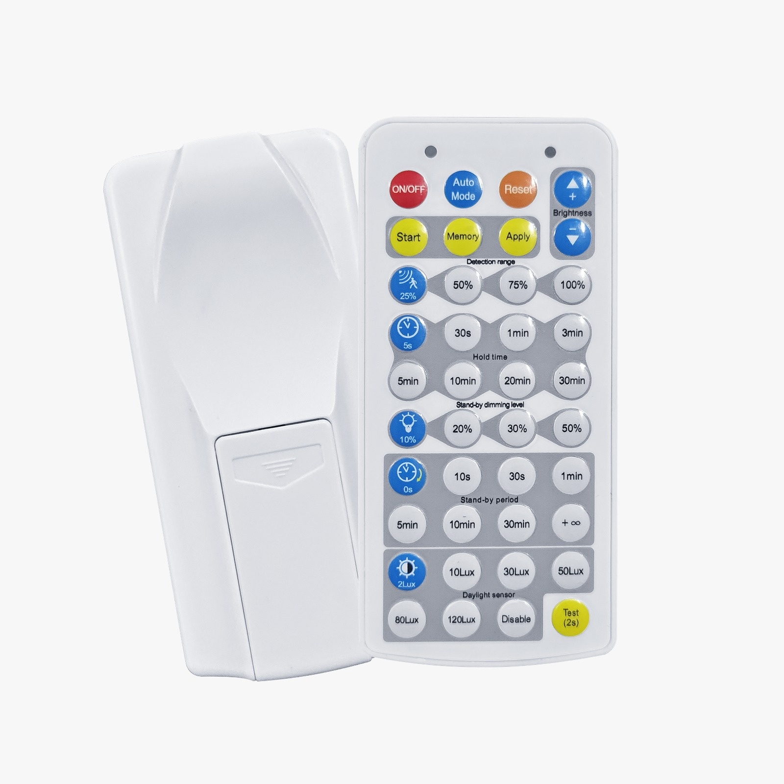 Met de afstandsbediening kan je de Helderheid, gevoeligheid, brandtijd, Daglichtsensor en terugdim lichtopbrengst instellen.