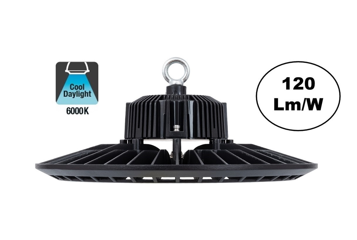De zeer krachtige 120 Lumen per watt verhouding, met in totaal 18000 lumen, zorgt ervoor dat er niet wordt ingeleverd op de huidige belichting. De LED Ufo High Bay 150w evenaart de belichting van een huidige 400w gasontladingslamp. Zo kan de besparing tot wel 70% oplopen zonder in te leveren op belichting.