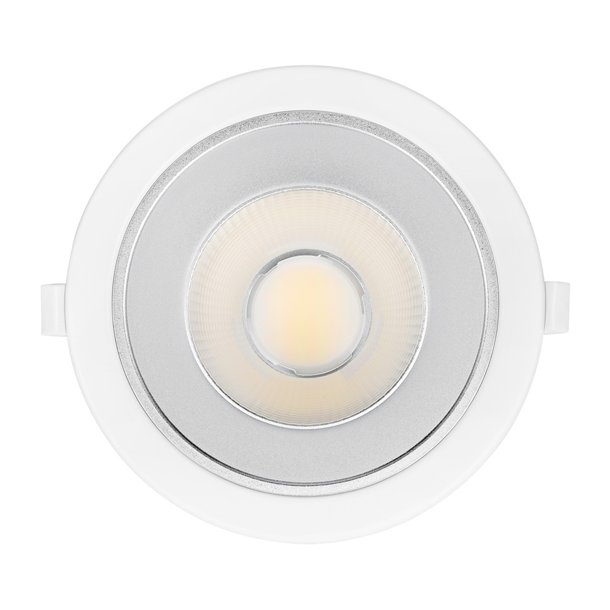 Deze zeer hoogwaardige kwaliteit Reflector LED Downlighter 20w is gemaakt van aluminium met wit kleurige behuizing. De gewenste lichtkleur kan eenvoudig worden ingesteld middels de schuifknop aan de achterzijde van het armatuur. De verdiepte reflector zorgt voor een lage verblinding (UGR<19) met een stralingshoek van 60°.