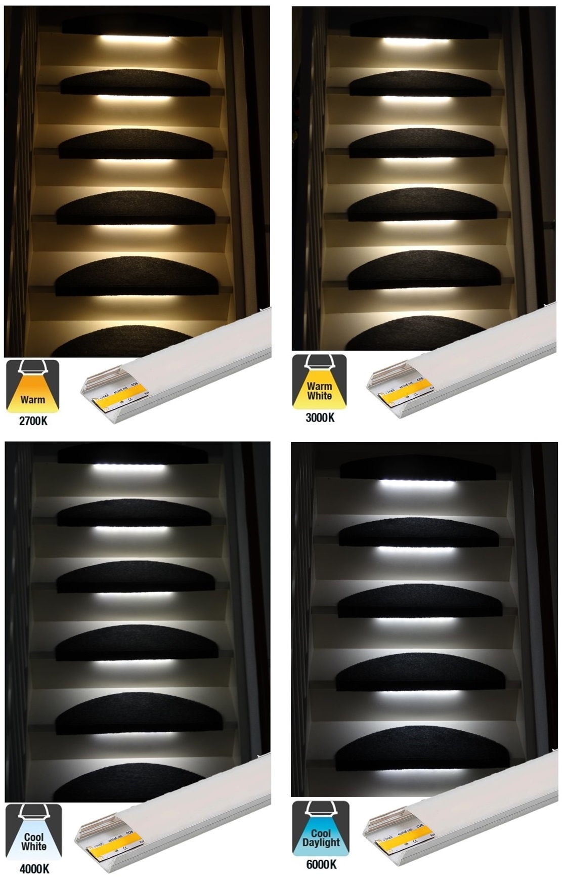 Deze set bestaat uit LED strip verlichting op lengte gemaakt voor toepassing onder de traptreden. Zet je trap in het licht en voorzie elke traptreden van een mooi lichtstrip. Of plaats om de traptreden een strip om het iets rustiger effect te krijgen. Elke LED strip is voorzien van een Aluminium profiel op lengte van 31 cm. De profiel zorgt voor een nette afwerking, bescherming en koeling voor de LED strip.