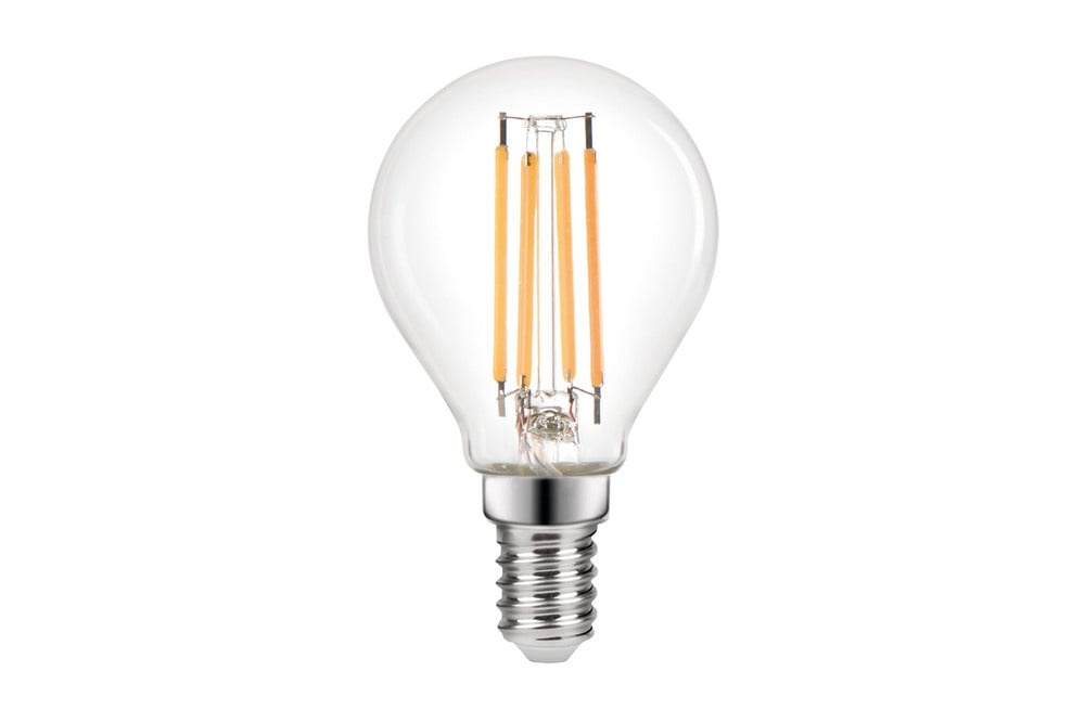 E14 3,4w Filament Bollamp Dimbaar in 2700K Warm witte lichtkleur.