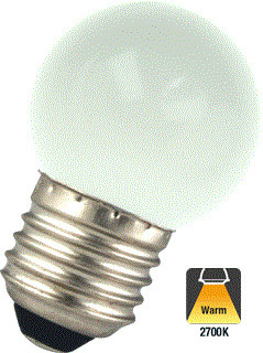 Unieke sfeervolle LED E27 Bol Lamp met 1w verbruik en 30/50 lumen aan lichtopbrengst. De zeer geringe lumen uitstoot vervangt een 8w gloeilamp. Zeer geschikt als sfeerverlichting in woonkamer, restaurant, bar, hotels of te gebruiken in prikkabels. De matte kap zorgt voor een fijne lichtbeleving. De unieke 2000K Flame lichtkleur evenaart een kaars lichtkleur maar dan een tikje geler. De 2700K lichtkleur een zeer fijne warm witte lichtkleur