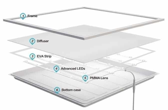 Dankzij het Backlit ontwerp, wat inhoud dat de krachtige LEDS aan de achterkant van het paneel gemonteerd zit, zorgt dit LED paneel voor een direct lichtbeleving t.o.v. een vlak led paneel wat indirect belichting creëert. De totale lumen wordt direct naar beneden gestraald waardoor er een hogere Luxwaarde behaalt wordt.