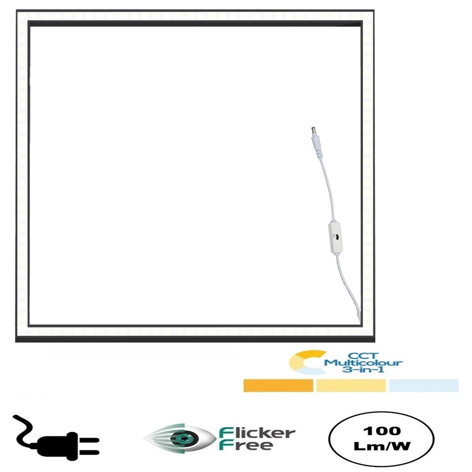 Het Frame Led Paneel 60x60cm kan ingesteld worden in 3 verschillende lichtkleuren. Het LED paneel heeft een verbruik van slechts 40w met 3500 Lumen. Het back-lit paneel is voorzien van een 3 kleuren switch. Dat houdt in dat het paneel ingesteld kan worden in 3000K (warm wit), 4000K (Neutraal wit) en 5000K (Daglicht wit). Door het instellen van de 3 verschillende lichtkleuren, een 3 in 1 LED Paneel, kan je elke ruimte naar wens belichten.