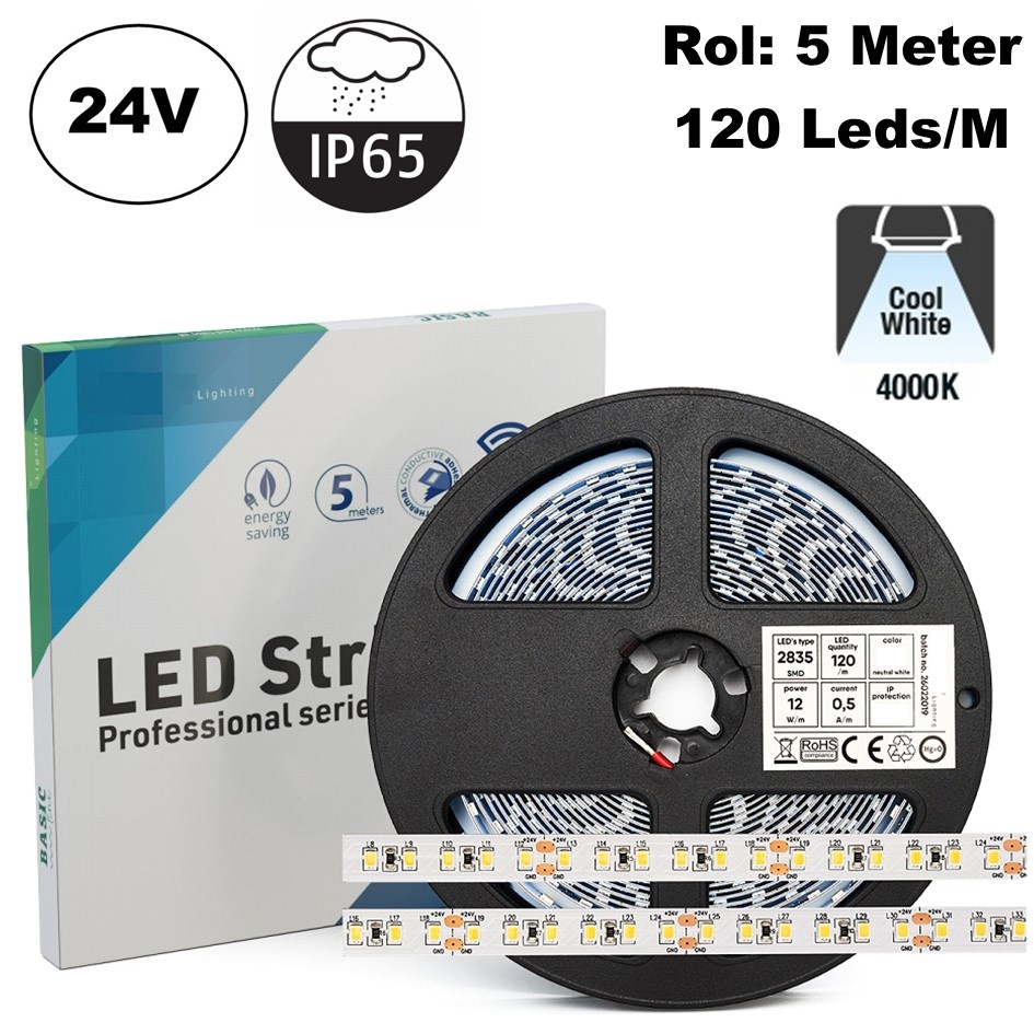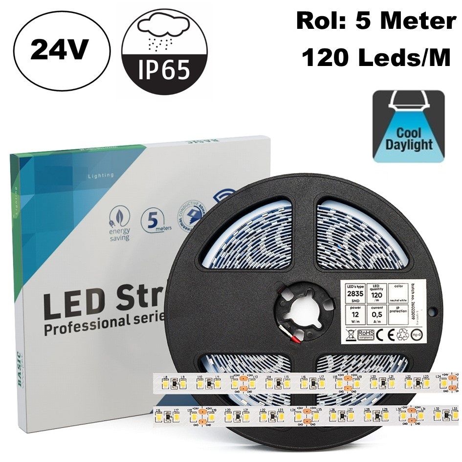 Deze led strip 2835 smd werkt op een 24v constante spanning. Wij hebben in ons assortiment diverse wattage 24v constante led strip drivers.