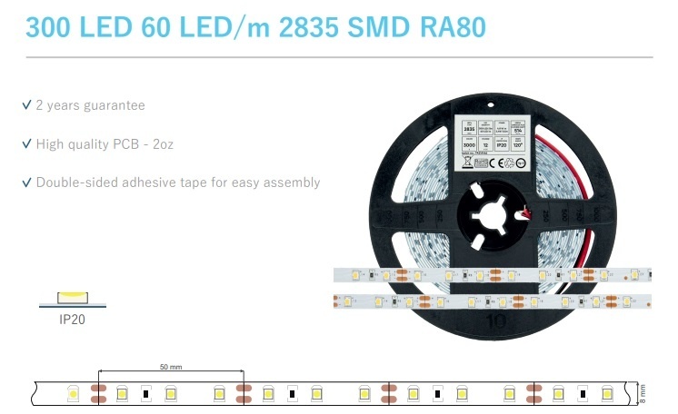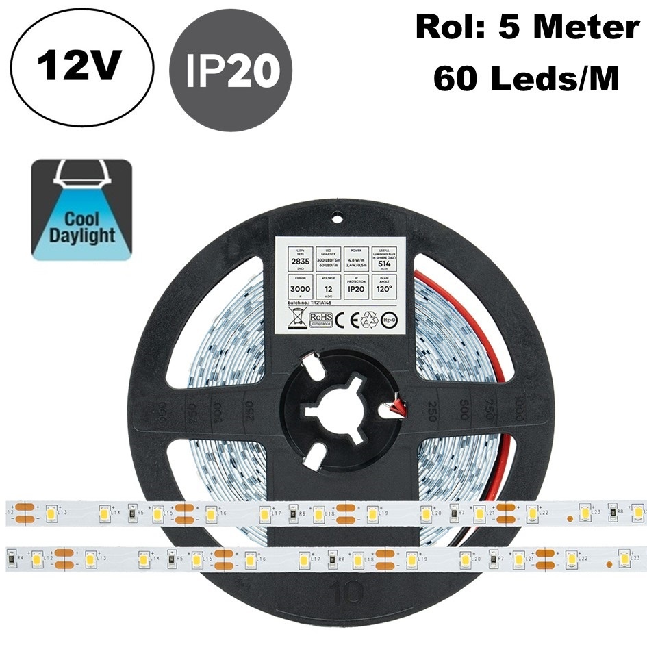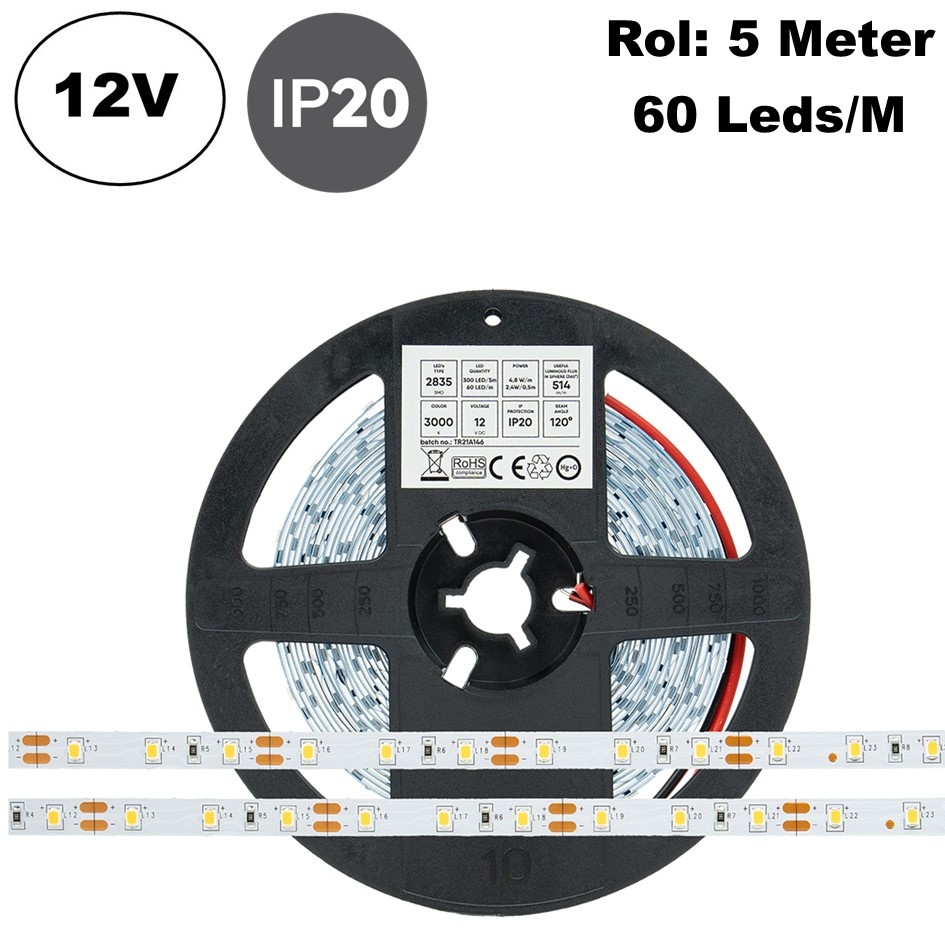 Deze Led Strip met krachtige SMD 2835SMD heeft 60 leds per meter. Met een zeer goede lichtopbrengst van 514 - 540 lumen per meter zeer geschikt als sfeermaker in elke ruimte. Deze led strip heeft een IP20 normering wat betekent dat deze voor binnenshuis gebruik kan worden.