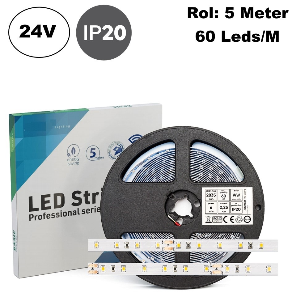 Deze Led Strip met krachtige SMD 2835SMD heeft 60 leds per meter. Met een zeer goede lichtopbrengst van 650 lumen per meter zeer geschikt als sfeermaker in elke ruimte. Deze led strip heeft een IP20 normering wat betekent dat deze voor binnenshuis gebruik kan worden.
