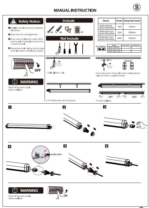 Informatie voor het installeren van de LED Tri Proof 120cm 32w: