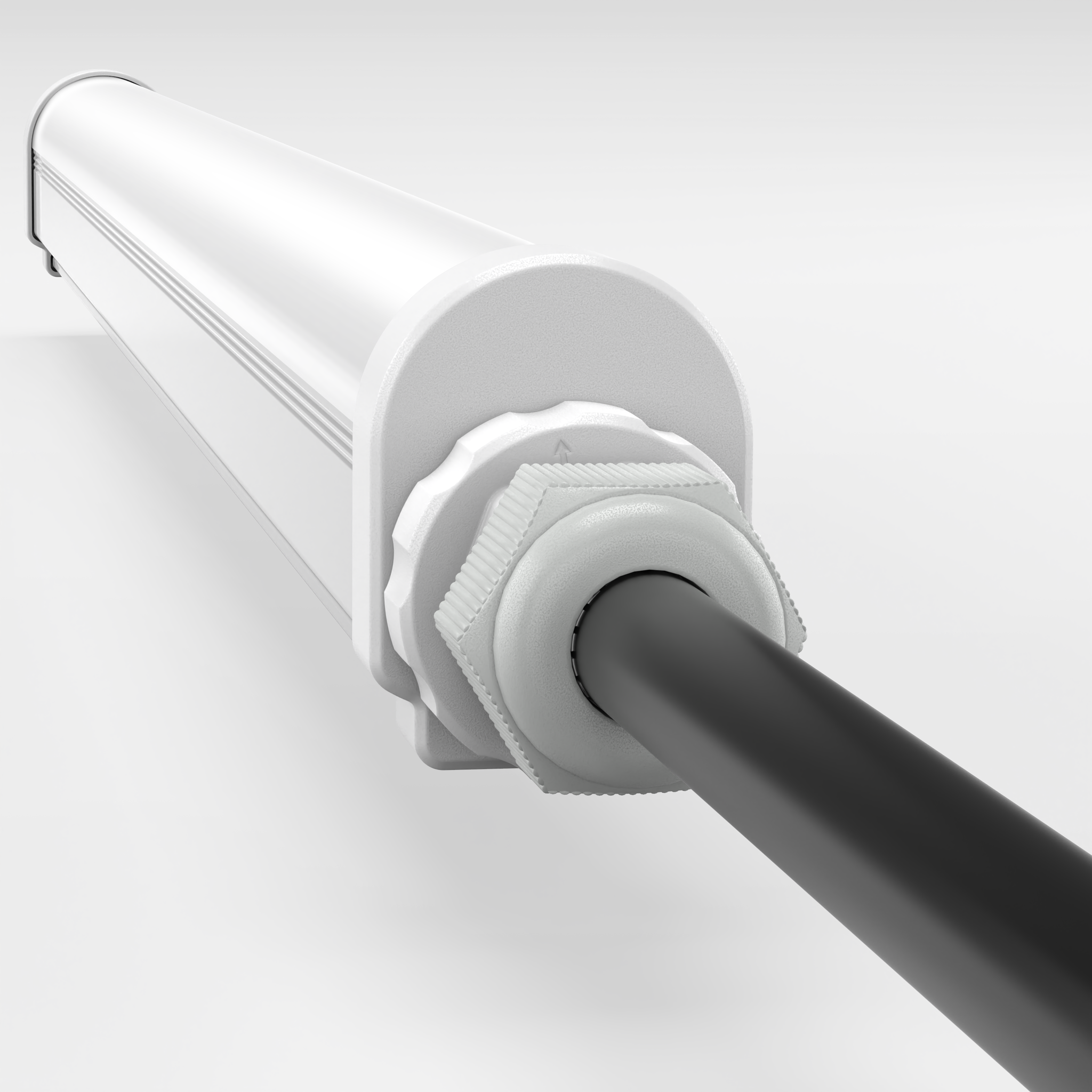 Voor het installeren van de 120cm LED Tri Proof wordt er geadviseerd om gebruikt te maken van een kabeldikte van minimaal 3x 1.5mm2. De kabel kan afgesloten worden in de bijgeleverde PG13 wartel.