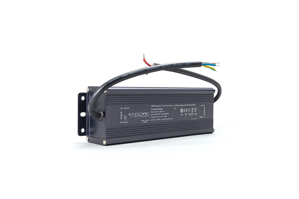 Met deze ECOPAC LED strip voeding kan je je 24vdc LED verlichting TRIAC dimmen. Met TRIAC dimmen wordt bedoelt het direct dimmen op het netstroom door gebruik te maken van bijvoorbeeld een muurdimmer