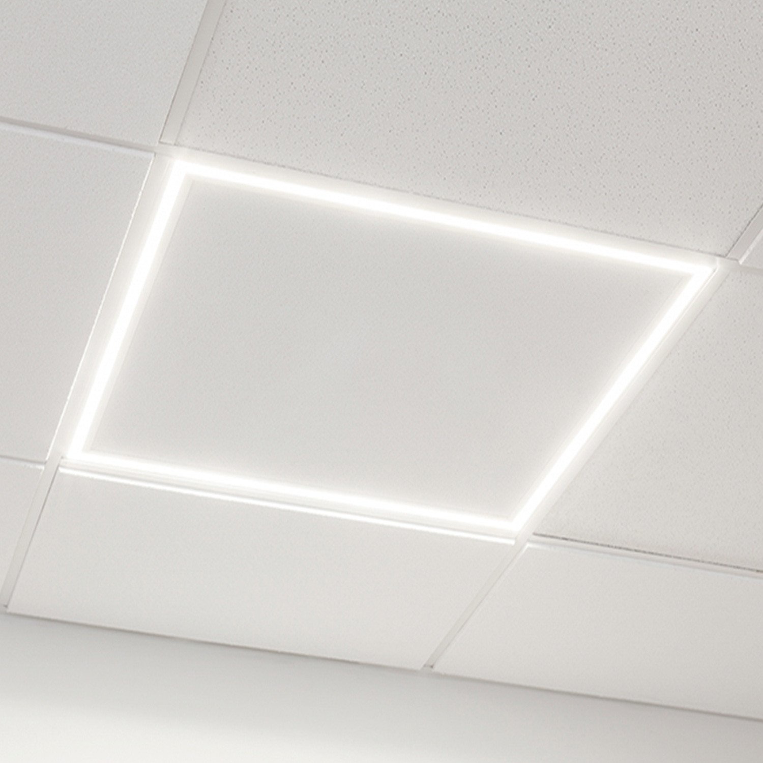 Dit innovatieve en stijlvolle led paneel onderscheidt zich vanwege zijn unieke design. De krachtige leds stralen het licht vanuit de randen naar beneden, hierdoor is dit paneel een echte eye catcher met moderne uitstraling. Het Frame led paneel heeft een speciaal ontworpen frame dat past door een 60×60 systeemplafond met minimaal een binnenmaat van 57,5×57,5cm. vervolgens kan het geheel naadloos worden geplaatst in een systeemplafond. De lichtoutput is vergelijkbaar met een standaard inlegarmatuur waardoor deze 1 op 1 kan worden vervangen.