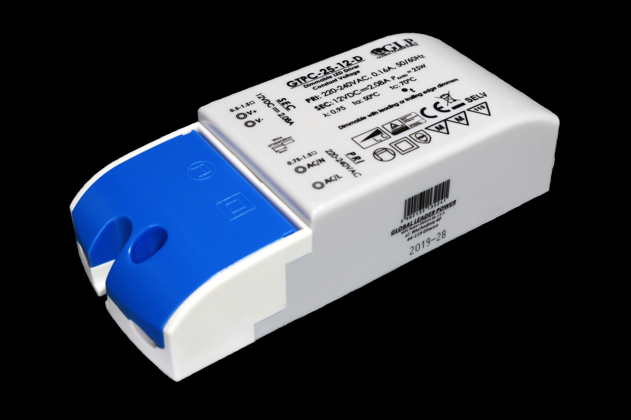 GLP TRIAC Dimming Led Strip voeding 12V/25W/2,08A, Max: 20w, Dimbaar, Afm:122x52x30mm, 2 Jaar Garantie
