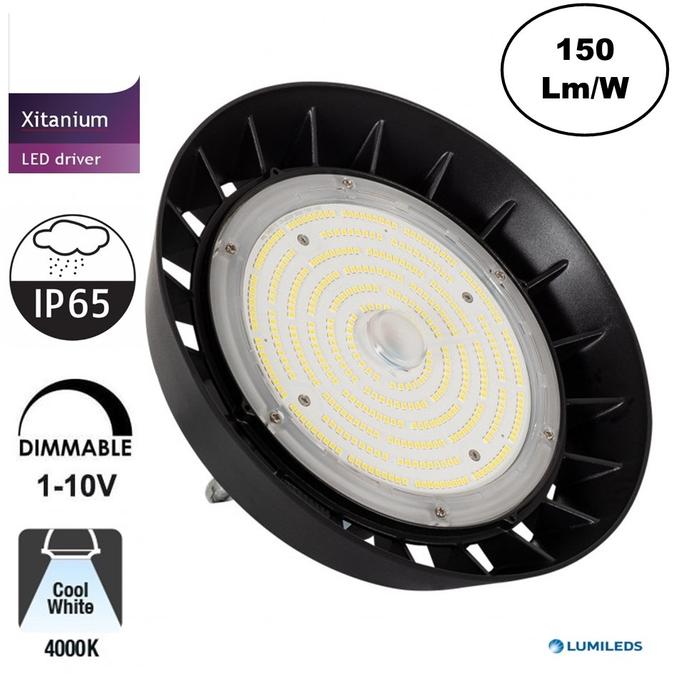 De High Bay Led Ufo 200w lamp heeft een IP65 normering en kan gebruikt worden in vochtige ruimtes. De krachtige Lumileds geeft de LED Ufo lamp zijn 4000K Neutraal wit of 6000K Daglicht witte lichtkleur.