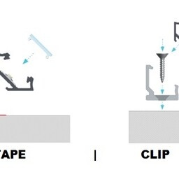 De Norman LED strip profiel kan als opbouw profiel gebruikt worden. Je monteert het profiel direct tegen het plafond, wand of gipsplaat met een montagebeugel (artikelnummer LLA2683). Of gebruik een stevige 3M Dubbelzijdige tape.(artikelnummer:LDA1866)