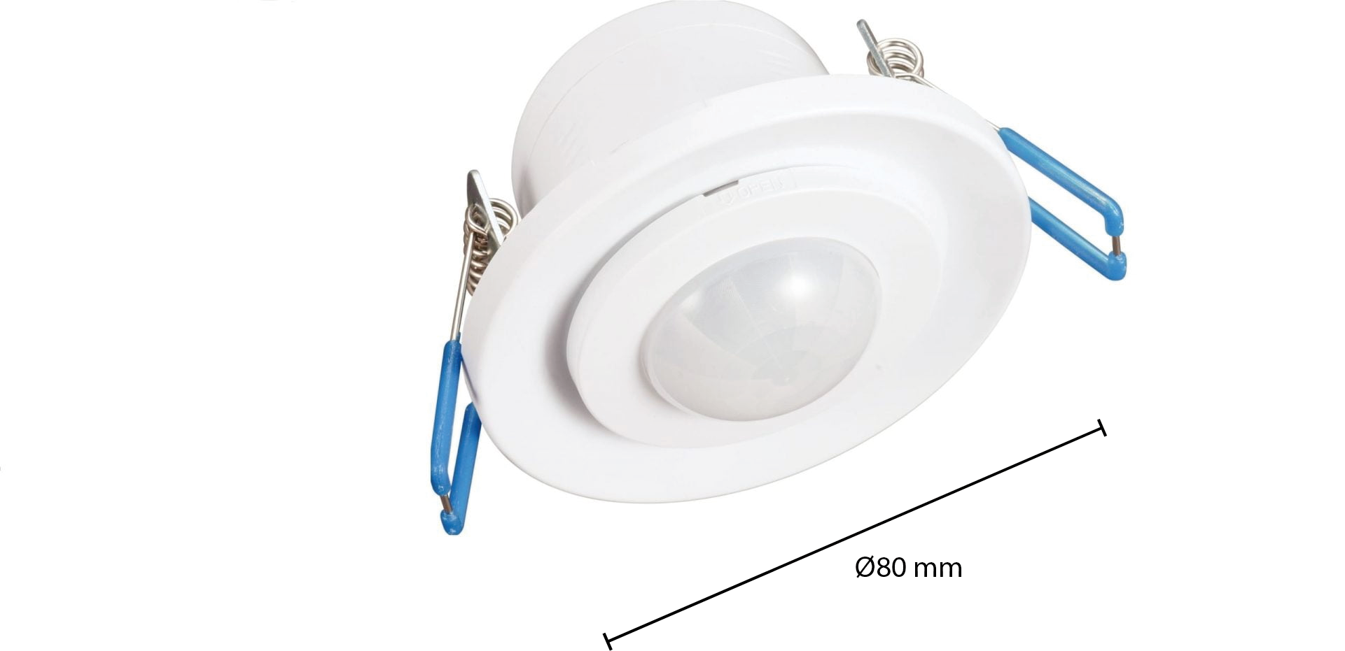 Dankzij het compacte design valt de bewegingsmelder niet op wanneer deze ingebouwd wordt in stucplafonds of systeemplafonds. De detectiehoek bedraagt maar liefst 360 graden rondom met een bereik van +- 6 meter bij een advieshoogte van 2,2-4 meter.
