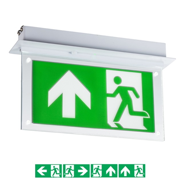 Het LED noodverlichtingsarmatuur 2w wordt geleverd inclusief 3 pictogrammen die de volgende pijlrichtingen hebben: naar links, naar rechts en naar boven. Daarnaast vindt u nog een witte plaat die als achterkant dient van een ander pictogram. Dit armatuur is namelijk van beide kanten zichtbaar. Als u bijvoorbeeld wilt dat klanten vanaf de ene kant naar links lopen dan doet u aan de ene kant een plaat met de pijl naar links en aan de andere kant de plaat met de pijl naar rechts. Het meest zien we dat klanten de pijl omhoog gebruiken met aan de andere kant de witte plaat. Zo wordt het armatuur dan ook standaard geleverd (met de overige opties meegeleverd in de doos).