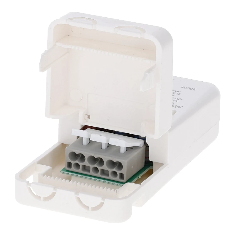 De voeding is voorzien van een loop in / loop out driver. De Driver heeft een kroonsteen waarmee je een zeer snelle parallellen verbinding maakt van spotje naar spotje.