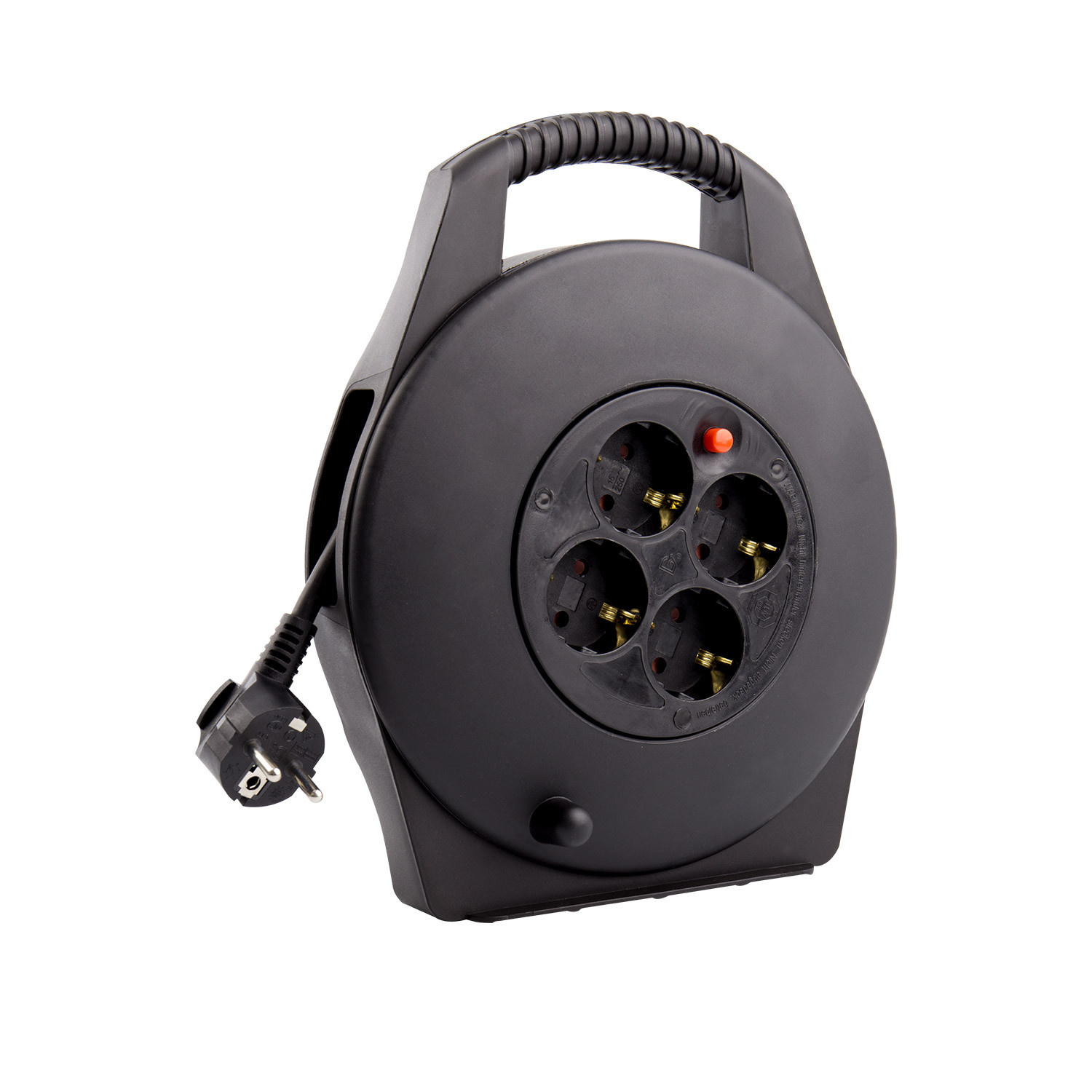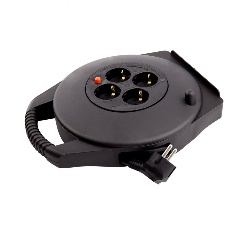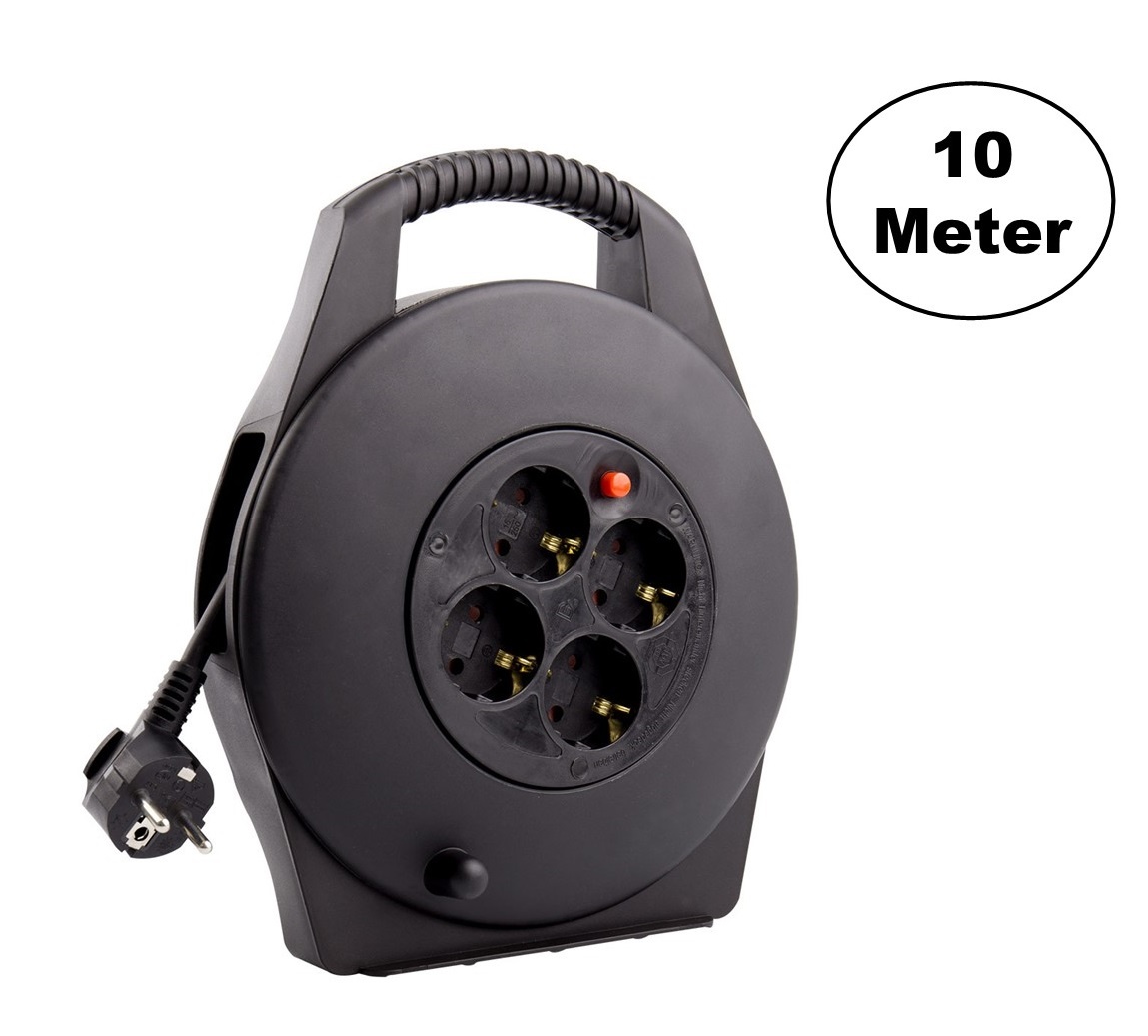 Deze kabelhaspel heeft een verlengbare stekker van 10m en 4x Schuko uitgangen van 16A per stuk met een voltage van 220-250Vac. Dit product wordt rechtstreeks op het lichtnet aangesloten en kan verschillende elektrische apparaten van stroom voorzien (bijvoorbeeld: huishoudelijke apparaten, elektrische gereedschappen etc.). Deze kunnen op een grote afstand van het stopcontact gebruikt worden. De haspel is inclusief kinderbeveiliging en overspanningsbeveiliging.