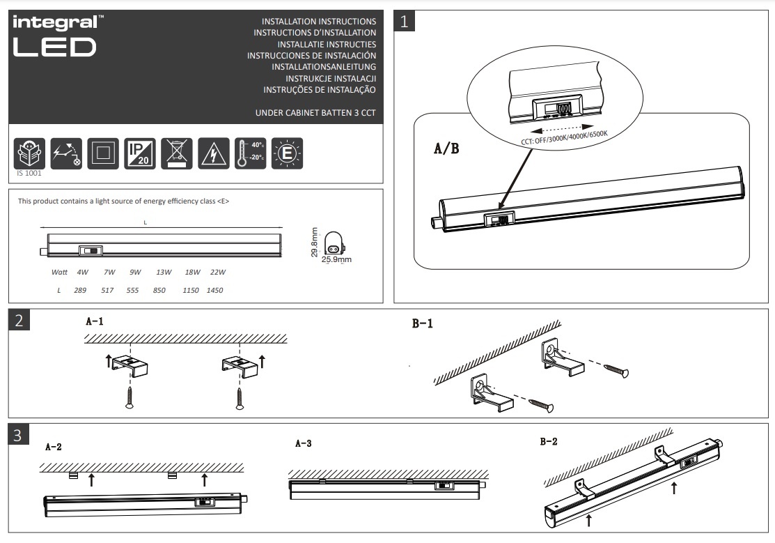 Het armatuur is voorzien van een eigen aan/uitschakelaar en Colour switch schakelaar. Met de Colour switch schakelaar kan je zelf de gewenste lichtkleur bepalen. Je kan kiezen in lichtkleur 3000K Warm Wit, 4000K Neutraal Wit of 6500K Daglicht wit