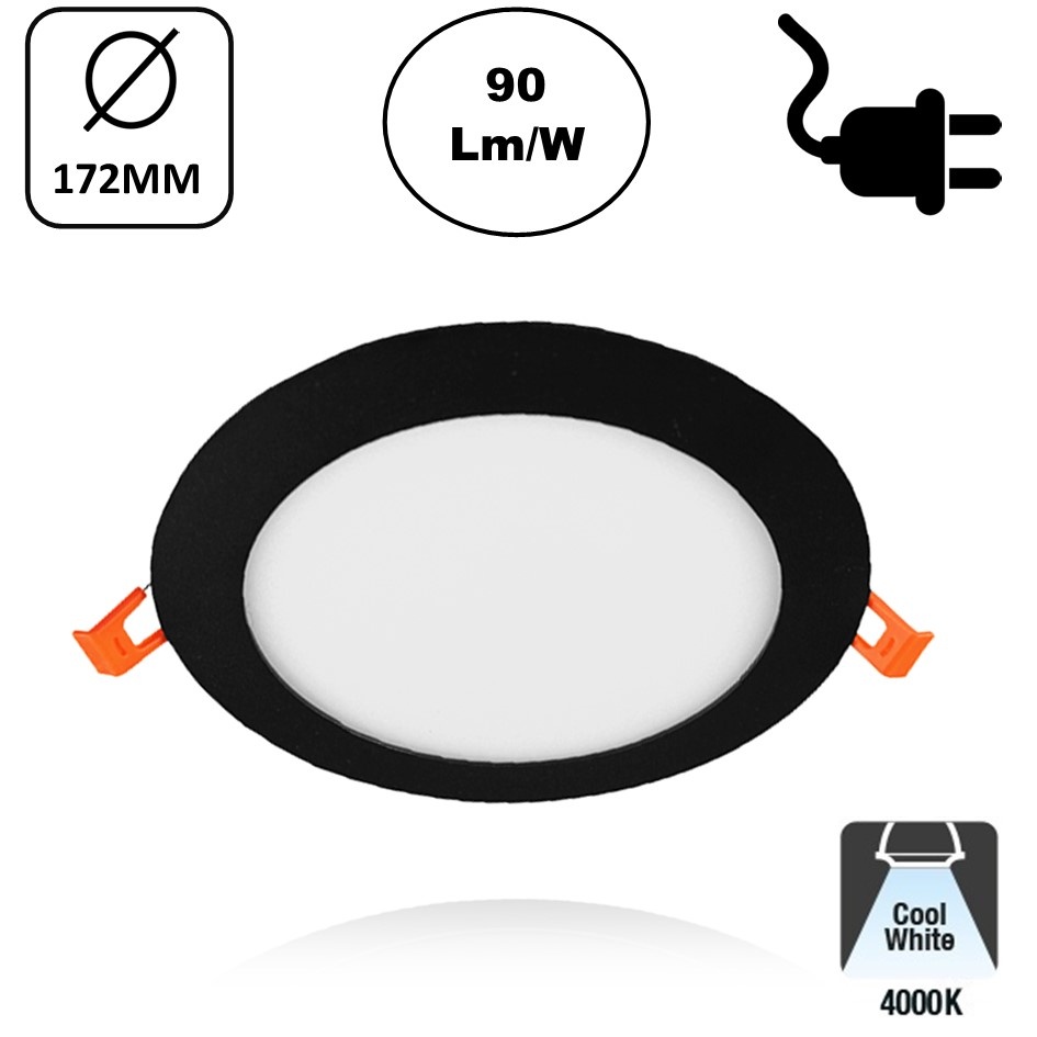 LED Downlighter Slim-U 12w, 1080 Lumen, Zwart, Aluminium Body, Stekkerklaar, Gatmaat Φ160mm, 2 Jaar Garantie