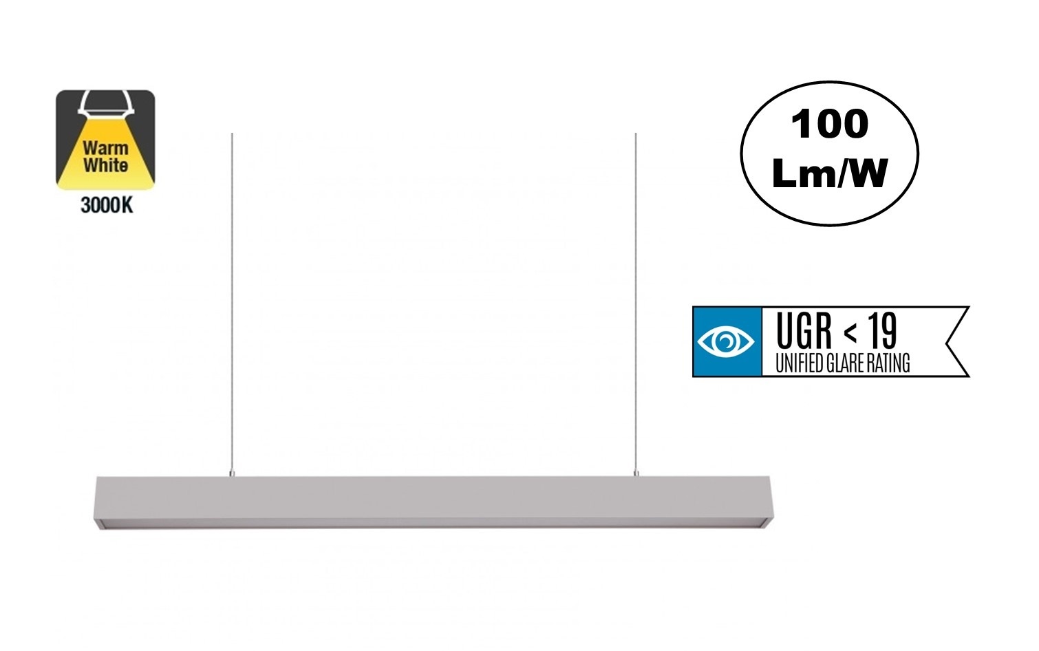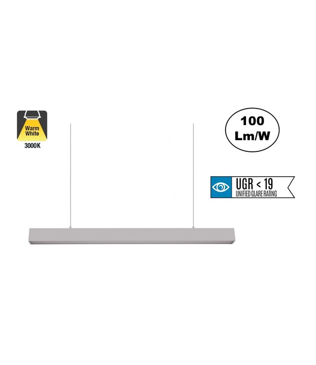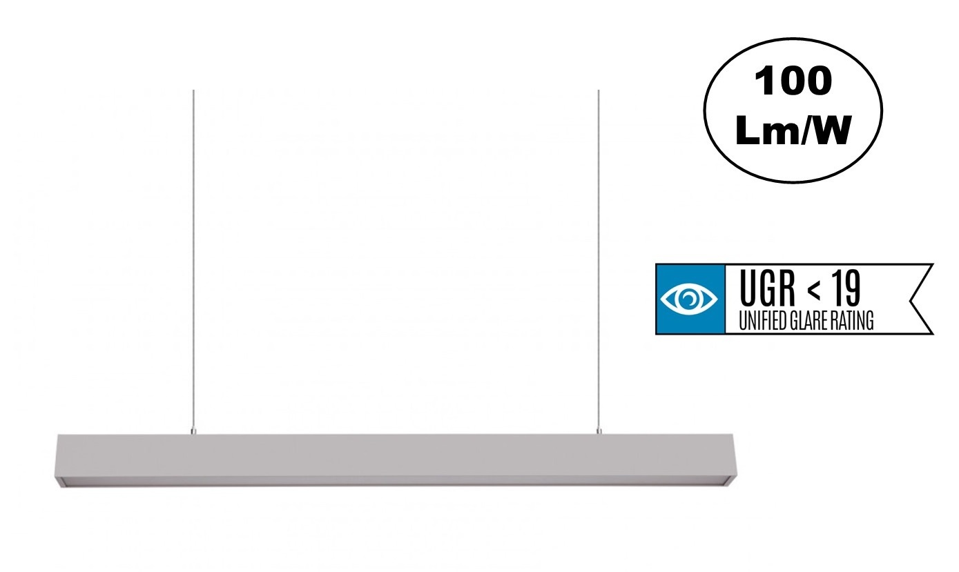 De Led Linearlamp 120cm is uitgerust met een speciale matte diffuser die een UGR<19 verblindingsfactor (geen verblinding) garandeert. In sommige situaties is het nodig om een voldoende verlichte omgeving te hebben zodat de taken uitgevoerd kan worden. Echter wordt er soms verblinding veroorzaakt door verlichting, wat een negatieve invloed kan hebben. Een laag UGR-niveau helpt werknemers zich comfortabeler te voelen, wat indirect bijdraagt aan het productieniveau. Lage verblindingsniveaus worden aanbevolen in gebieden waar veel uren onder kunstlicht worden doorgebracht, wat zeer belangrijk is in kantoren, opleidingscentra, werkruimtes etc.