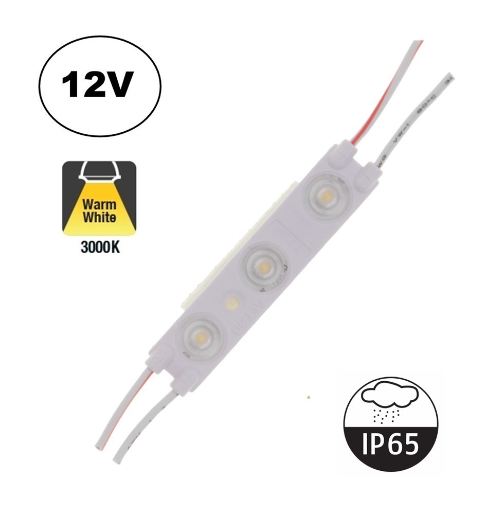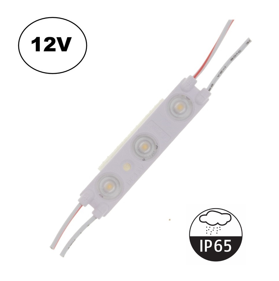 LED Module 3x 2835SMD, 0,72w, 62 Lumen , IP65, 12v, 2 Jaar Garantie