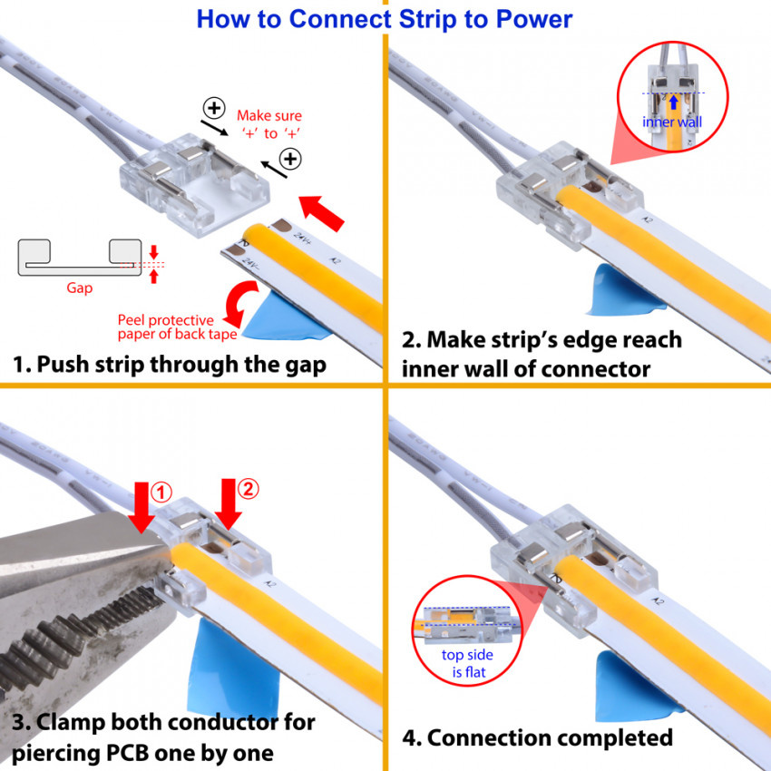 Let op!! Deze connectoren zijn alleen te gebruiken op Led Strips COB en SMD van 8mm breed