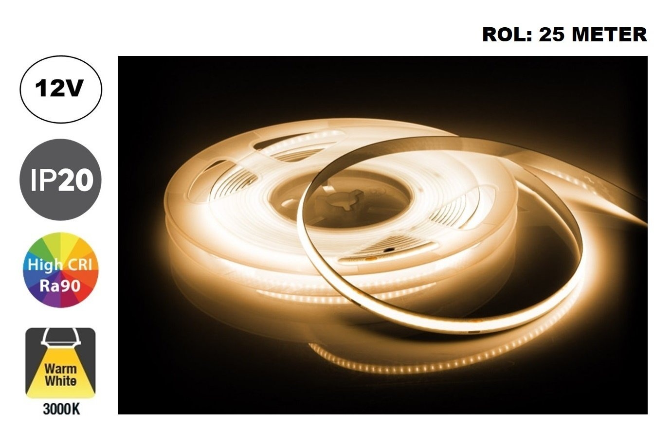 De Led Strip COB kan om de 2,5cm worden afgeknipt om de juiste lengte te creëren. Voor de COB led strip zijn diverse handige connector te bestellen om de led strip te kunnen verlengen tot maximaal 10 meter lang, bochten te maken of een dimmer er tussen te plaatsen.