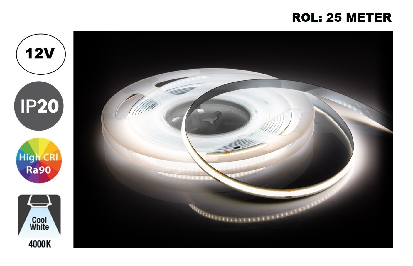 De Led Strip COB kan om de 2,5cm worden afgeknipt om de juiste lengte te creëren. Voor de COB led strip zijn diverse handige connector te bestellen om de led strip te kunnen verlengen tot maximaal 10 meter lang, bochten te maken of een dimmer er tussen te plaatsen.