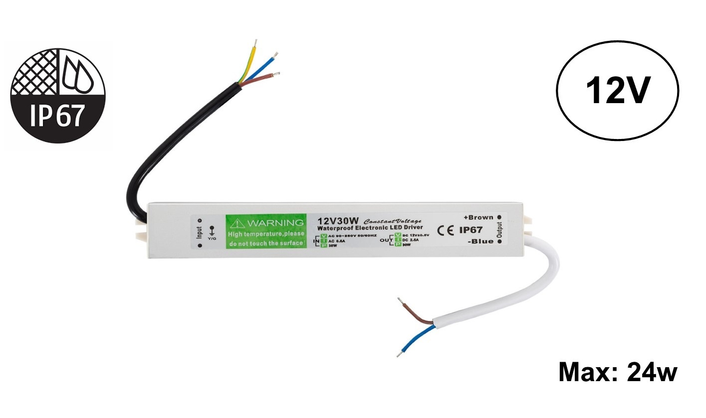 Deze 12V Led strip voeding heeft een beschermingsfactor IP67, waardoor hij volledig weerbestendig is.