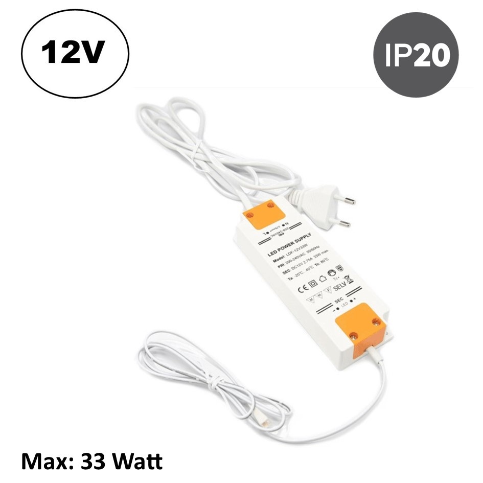 LED Transformator 33 Watt - 12Vdc T.b.v. Keuken / Kastverlichting