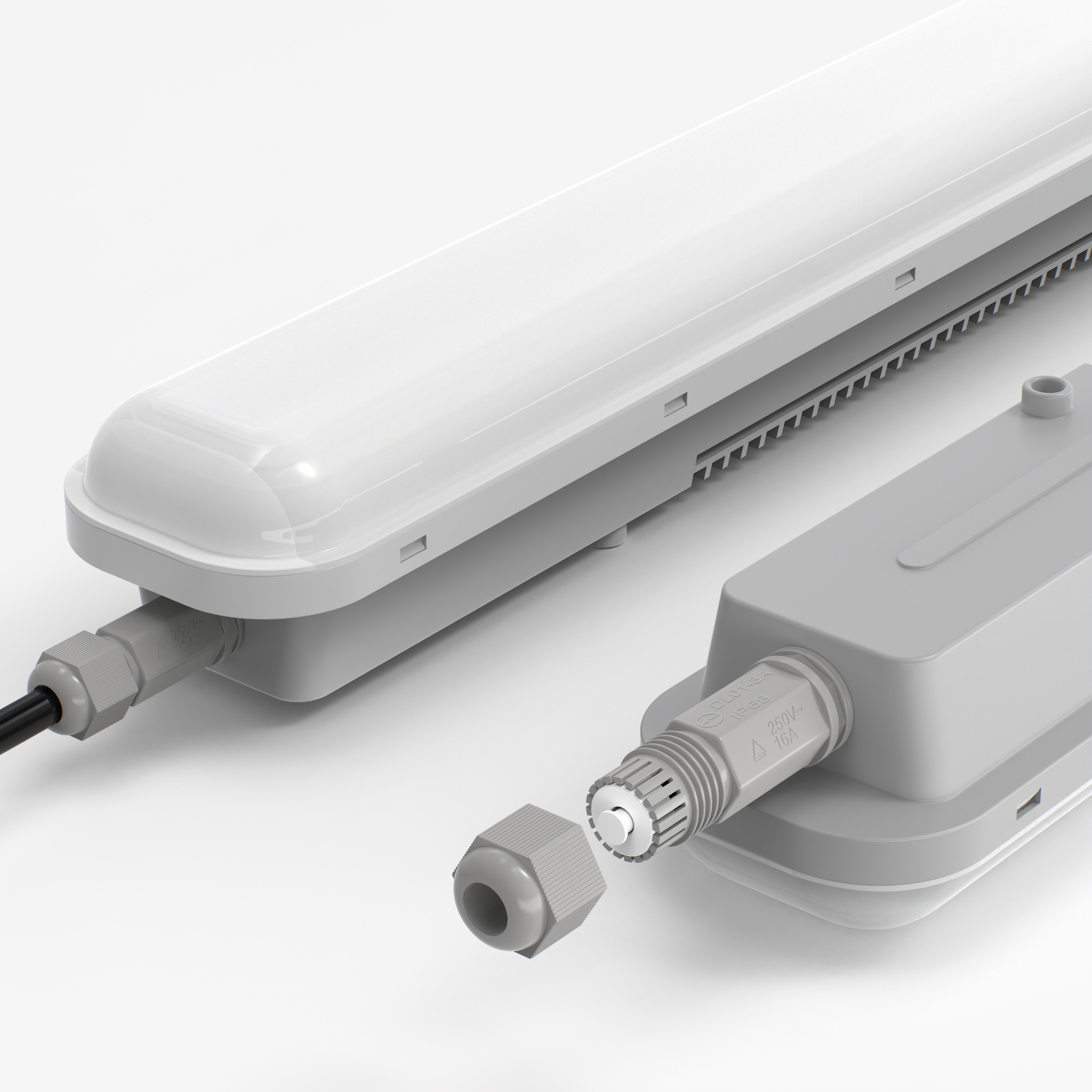 Tevens is deze led batten koppelbaar. Dit houdt in dat er aan 1 kant de stroom in komt en aan de andere kant de stroom er weer uit komt. Ideaal wanneer er een lichtlijn aangelegd moet worden.