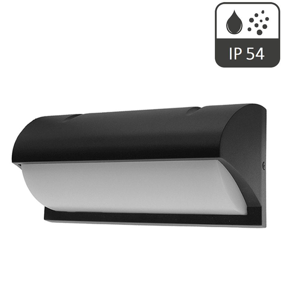 Deze LED Wandarmatuur heeft een IP54 (spatwaterdicht) normering. Is gemaakt van aluminium met polycarbonaat diffuser.