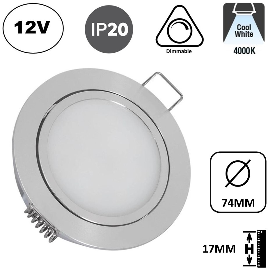 Door de zeer lage inbouwhoogte van 17mm en een diameter van 74mm is de spot geschikt voor plaatsing onder keukenkastjes of in je kledingkast. Met een gatmaat van diameter 67mm is dit een 1 op 1 vervanging van bestaande G4 armaturen. De spot worden geleverd met klemveren, maar deze kunnen gedemonteerd wordt voor montage. Met een klein beetje lijm op de rand of in het midden plaats je het armatuur heel gemakkelijk in een gat.