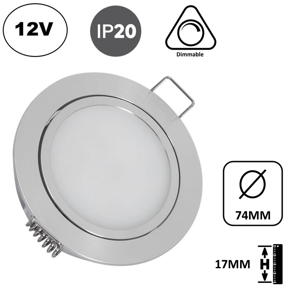 De inbouw LED Spot heeft een verbruik van 3 watt met een lichtopbrengst van 250 Lumen. De lichtkleur van 2700K Warm Wit en 4000K neutraal wit zorgt voor een fijne belichting in elke kamer. De inbouw spot werkt op 12Vdc (gelijkspanning) en is dimbaar. Je kan gebruik maken van een dimmer die geschikt is voor het dimmen van 12vdc verlichting, bijvoorbeeld artikel FUT035S+