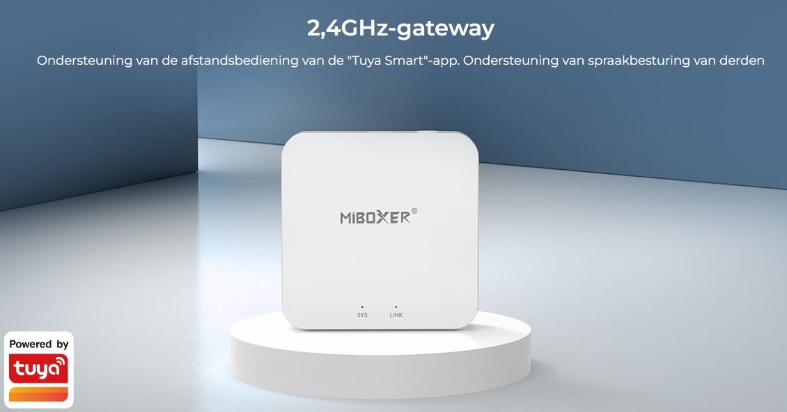 Met de Tuya Smart app (in de app store en google play store) en een Wifi hub, koppelt u alle Miboxer verlichtingsbronnen, stekkerdoos en schakelaars werkend op 2.4Ghz. Zo creëert u uw eigen Smart omgeving.