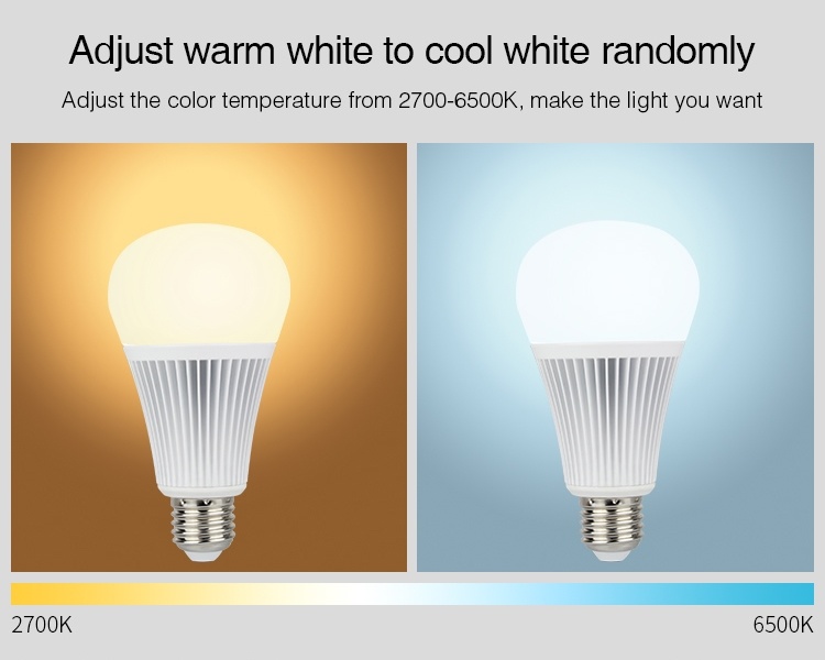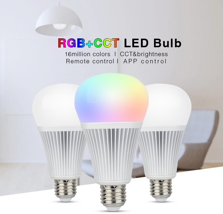 Deze LED lamp E27 RGB+CCT beschikt over alle kleuren van de regenboog inclusief CCT (2700K-6500K). De lamp kan zowel met RGB+CCT afstandsbediening als met een smartphone (Apple/Android) worden bediend.