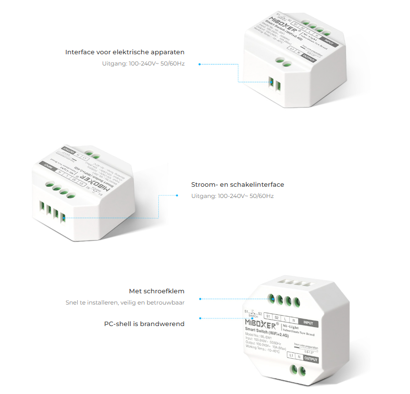 Alleen te bedienen met artikelen uit het Miboxer assortiment, zoals;