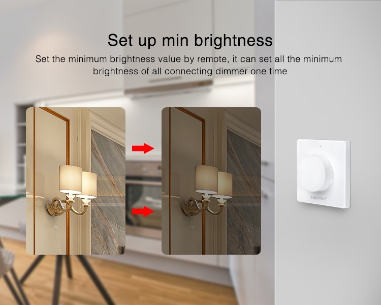 Het is mogelijk de dimbereik van de dimmer aan te passen op gewenste lichtopbrengst van de lampen. Bekijk hier de handleiding