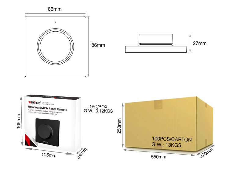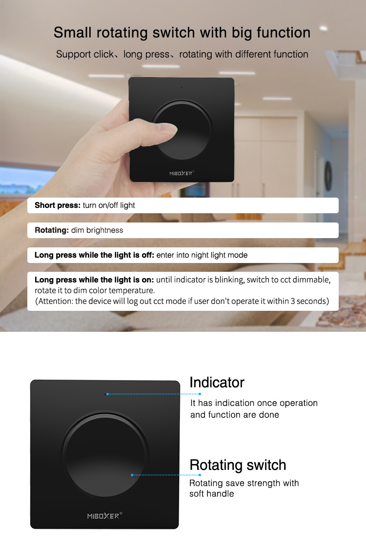 Te gebruiken op alle Miboxer Single Color LED Lampen, Miboxer Single Color Led strip controllers, Miboxer Triac Dimmer, Miboxer CCT LED Lampen en CCT LED Panelen