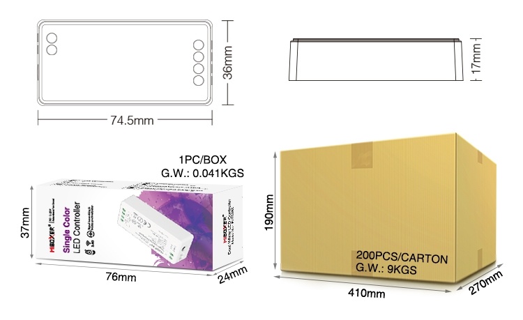 Voor het besturen van de MiBoxer Single Color en CCT controller dient gebruikt gemaakt te worden van en Single Color afstandsbediening, muurbediening of Wifibox (optioneel te bestellen).