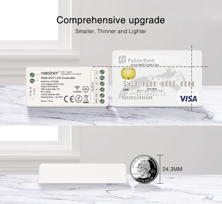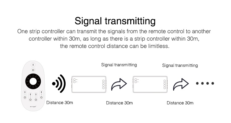 Deze Milight/Miboxer Single Color en CCT led strip controller kan gebruikt worden op alle soorten DC12v en DC24v led producten, bijvoorbeeld led strip en LED spots met DC aansturing.